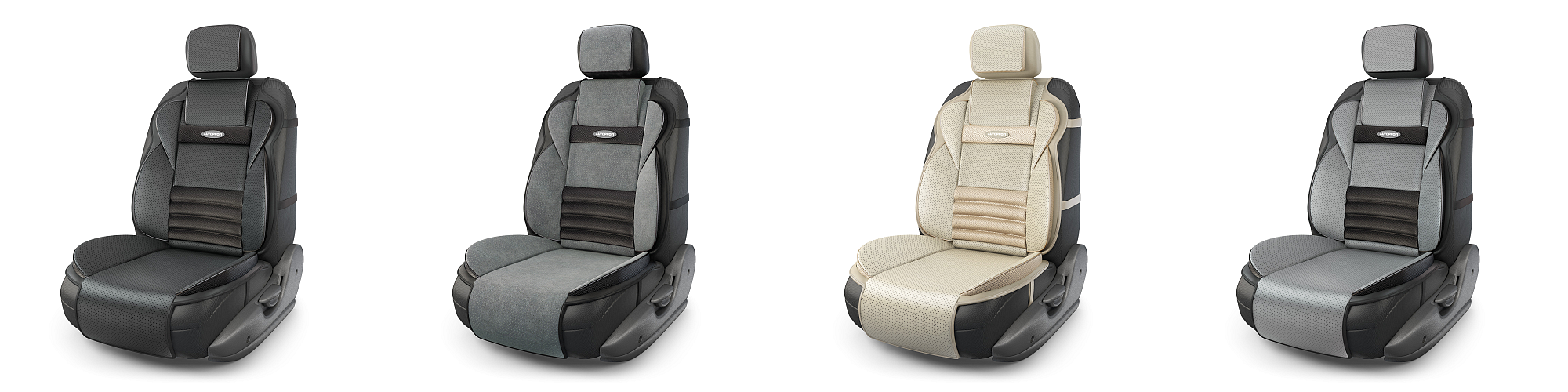 Модели накидок представлены в достаточном ассортименте моделей и расцветок, выполнены в двух вариантах: из экокожи и велюра. В качестве наполнителя производитель использовал поролон (5 мм). Они стильные и удобные, способные на 100% сочетаться с конфигурацией кресел любого автомобиля. Значительным преимуществом данных накидок перед аналогами является наличие удобной задней защиты с карманом, что предотвращает загрязнение кресла, а также одновременно служит удобным органайзером.