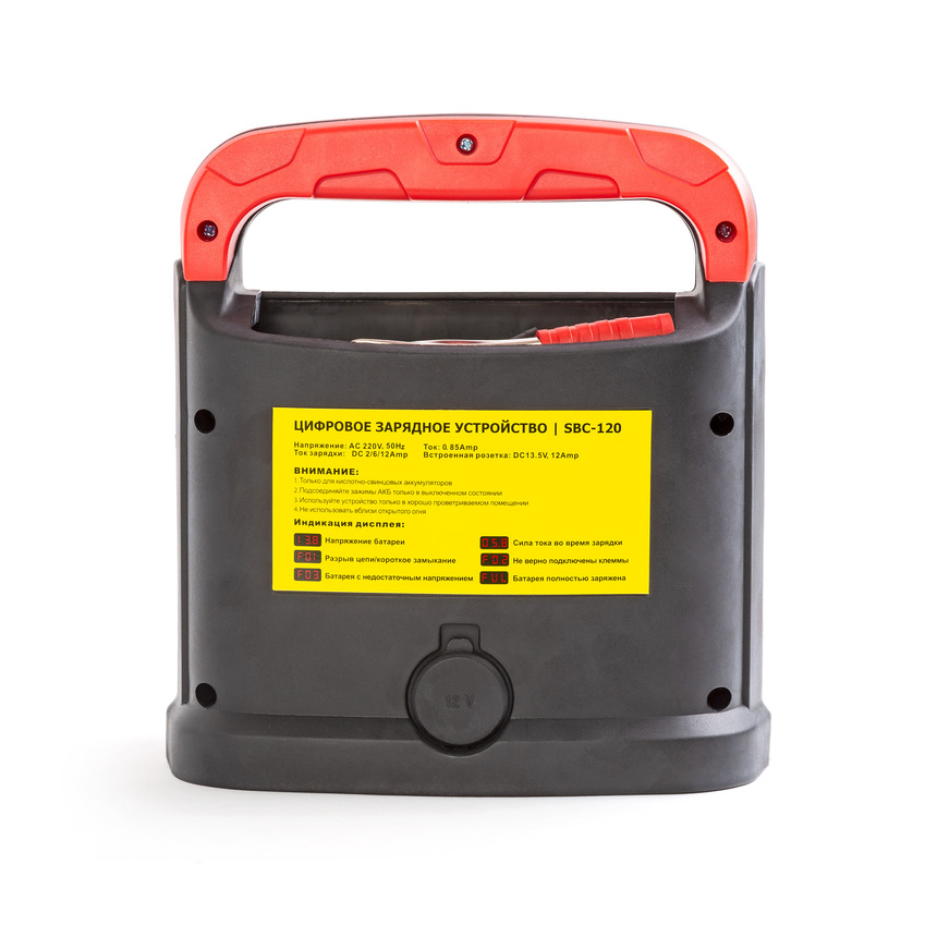 Трехфазная процедура зарядки дополнена защитой от перезарядки АКБ или неправильного подключения клемм к полюсам АКБ. Встроенная розетка 12В обеспечивает оптимальную силу тока для заряжания — 14А. Выбор силы тока можно выставить самостоятельно на 2, 6 или 12 ампер. Режим «Быстрая подзарядка» позволяет за 5 минут дать батарее заряд для пуска двигателя. Только для свинцово-кислотных аккумуляторов!